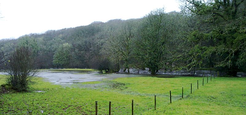 The flooded lane on the way down to Golitha Falls and Draynes Bridge