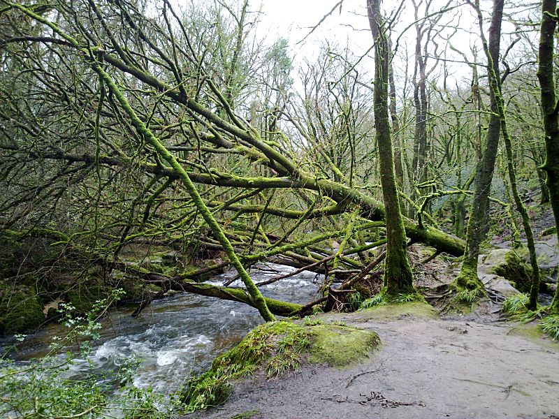 Some of the images below show the extent of the damage found after the flooding. For images of Golitha Falls in far more clement and happier weather, see the Golitha Falls and Golitha Falls in January pages!